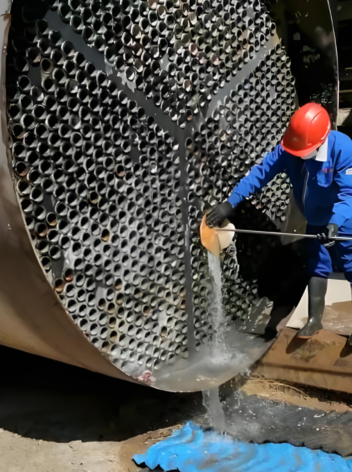 銅管換熱器是杭州酒店、寫字樓的常用類型,其內(nèi)壁易形成松軟水垢,但銅管怕酸腐蝕。我們采用弱酸性環(huán)保除垢劑,控制 pH 值在 3.5-4.5 之間,既能溶解水垢,又不會損傷銅管表面的氧化膜。清洗后通過渦流檢測,確保管束無腐蝕痕跡,某寫字樓的銅管換熱器經(jīng)處理后,使用壽命延長了 3 年以上。